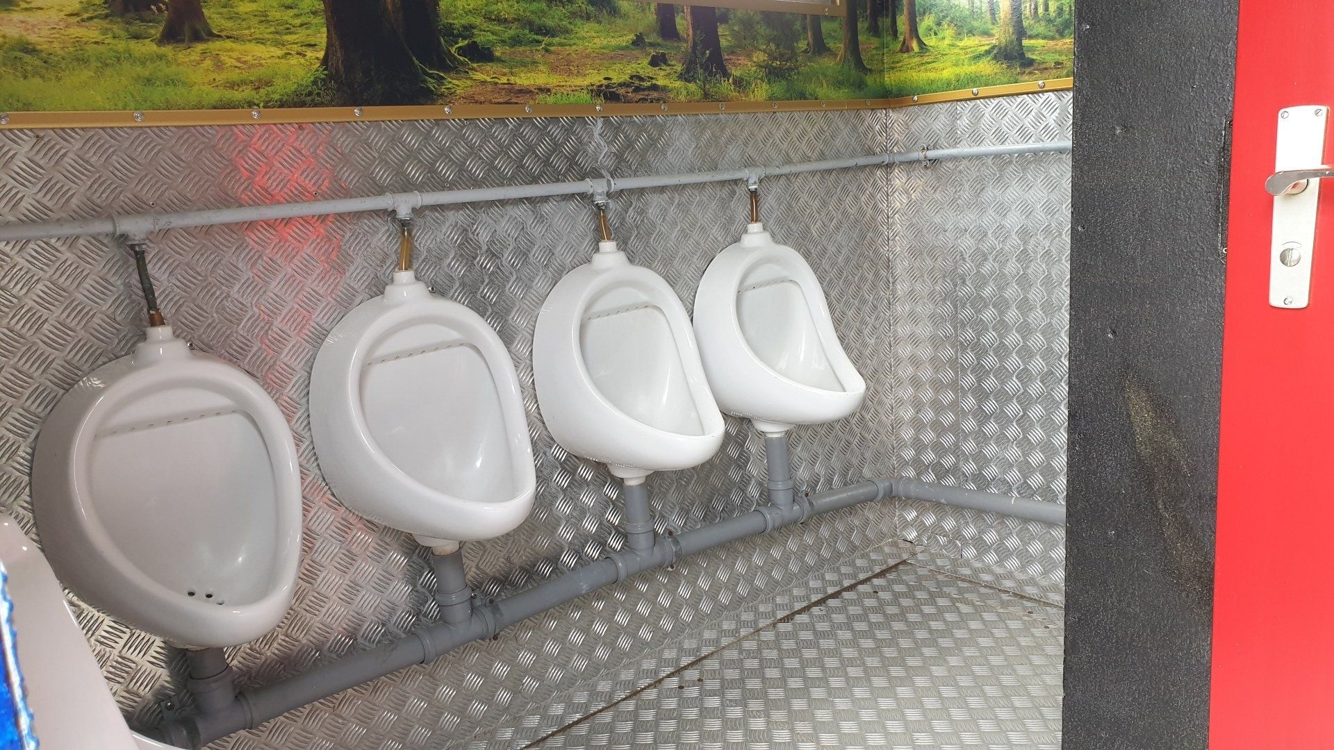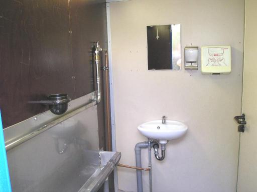 4 Damen-WC, 2 Herren-WC, große Urinalrinne, elektrische Händetrockner, goldene Wandspiegel, ..... aber seht selbst