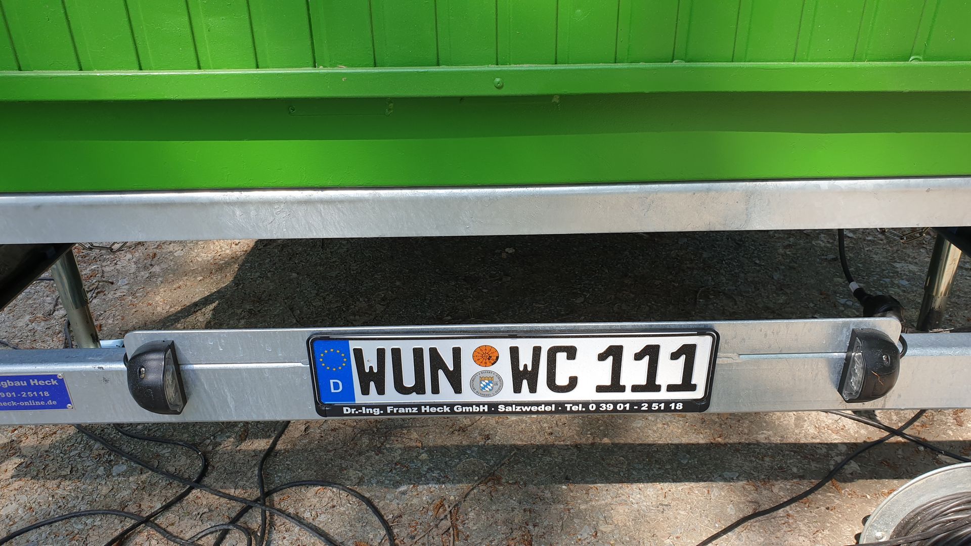 Die Fahrzeugbeleuchtung erfolgt über einen 7-poligen Stecker für 12V. (Sofern das Zugfahrzeug über keinen geeigneten Anschluss verfügt, ist der Wagen mit einem nachfolgenden Sicherungsfahrzeug zu befördern.)